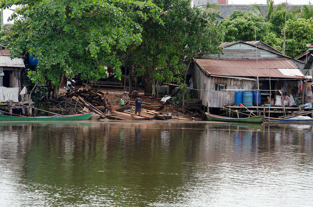 Nach dem man uns schonend beigebracht hat das wir uns die Flussfahrt über den Tonle Seap nach Phnom Penh abschminken können, da der See dann doch um diese Zeit eher einer Pfütze gleicht, haben wir notgedrungen den Bus genommen. Ich würde mal behaupten das wir nicht zwingend die schlechtere Wahl getroffen haben. So hat man zumindest etwas von den landestypischen Gegebenheiten mitbekommen. Vorbei an Dörfern und kleinen Orten in denen die einzige befestigte Straße die ist auf der wir gerade fahren. Die kleinen und auch größeren Ansiedlungen sind, ganz im Gegensatz zu Siem Reap, recht schmutzig und man sieht deutlich die Armut Kambodschas.